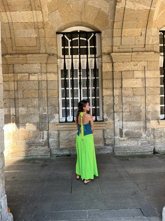 Blusa halter azul y verde